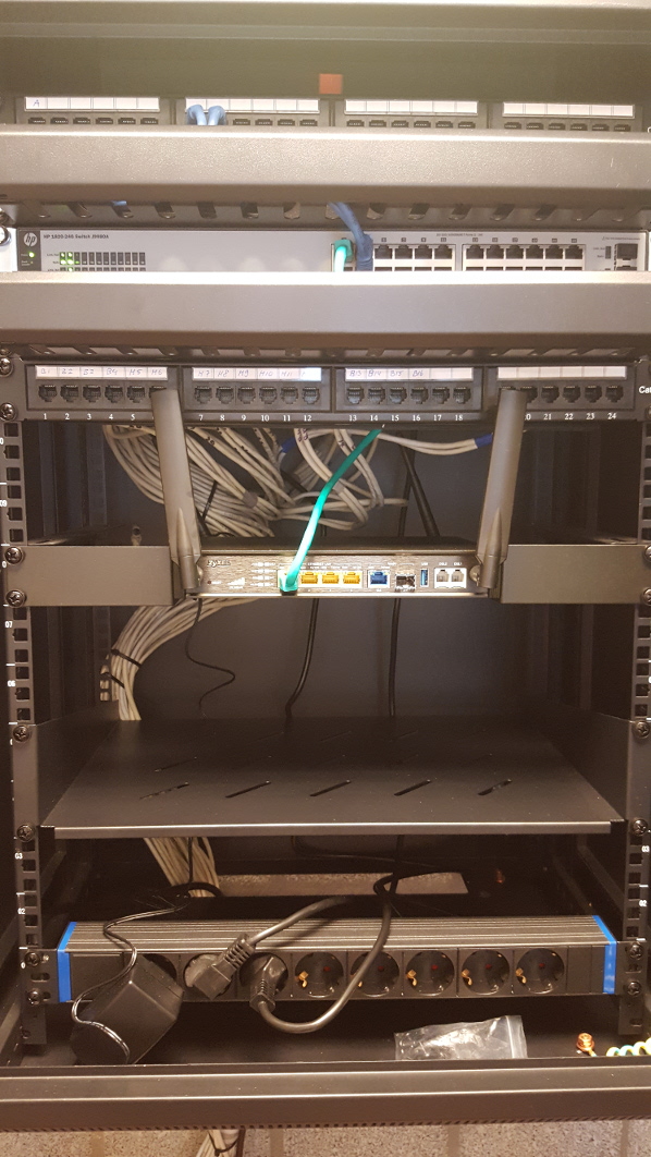 Daarna kan de patchkast verder volgebouwd worden met o.a. ventilator, kabelgeleiders, legborden, switch, firewall en andere netwerkapparatuur. De gewenste aansluitingen kunnen door middel van patchkabels gepatched worden.